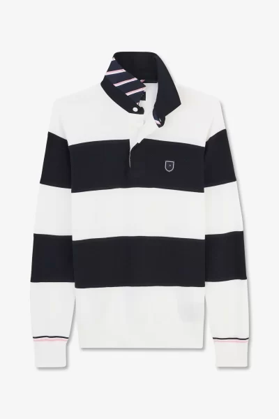 Pull rayé blanc à col polo
