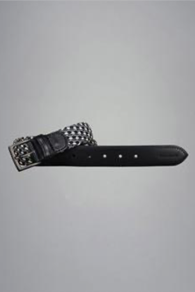 Ceinture rayée élastique tressée et bordée de cuir