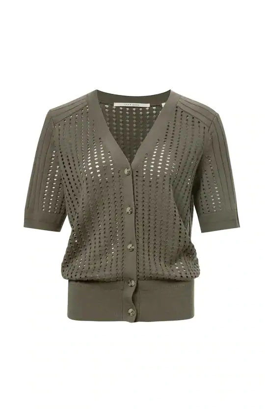 Cardigan à manches courtes avec tissu en maille et détail de point de côte