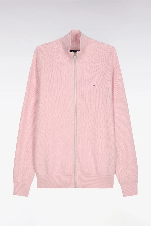 Cardigan zippé en coton rose