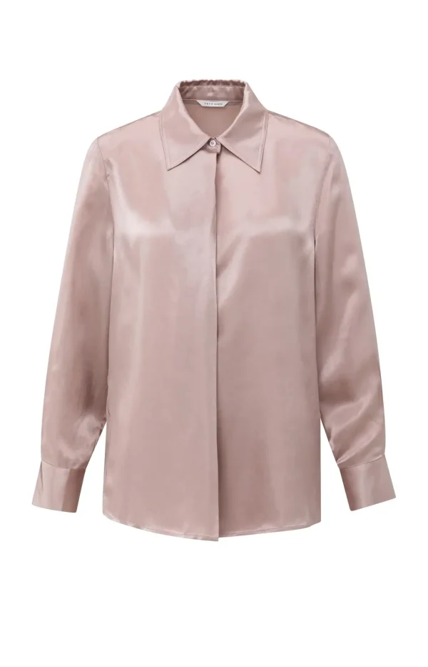 Chemisier en satin à col classique et fermeture dissimulée