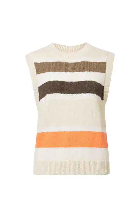 Spencer rayé multicolore avec col rond et côtes