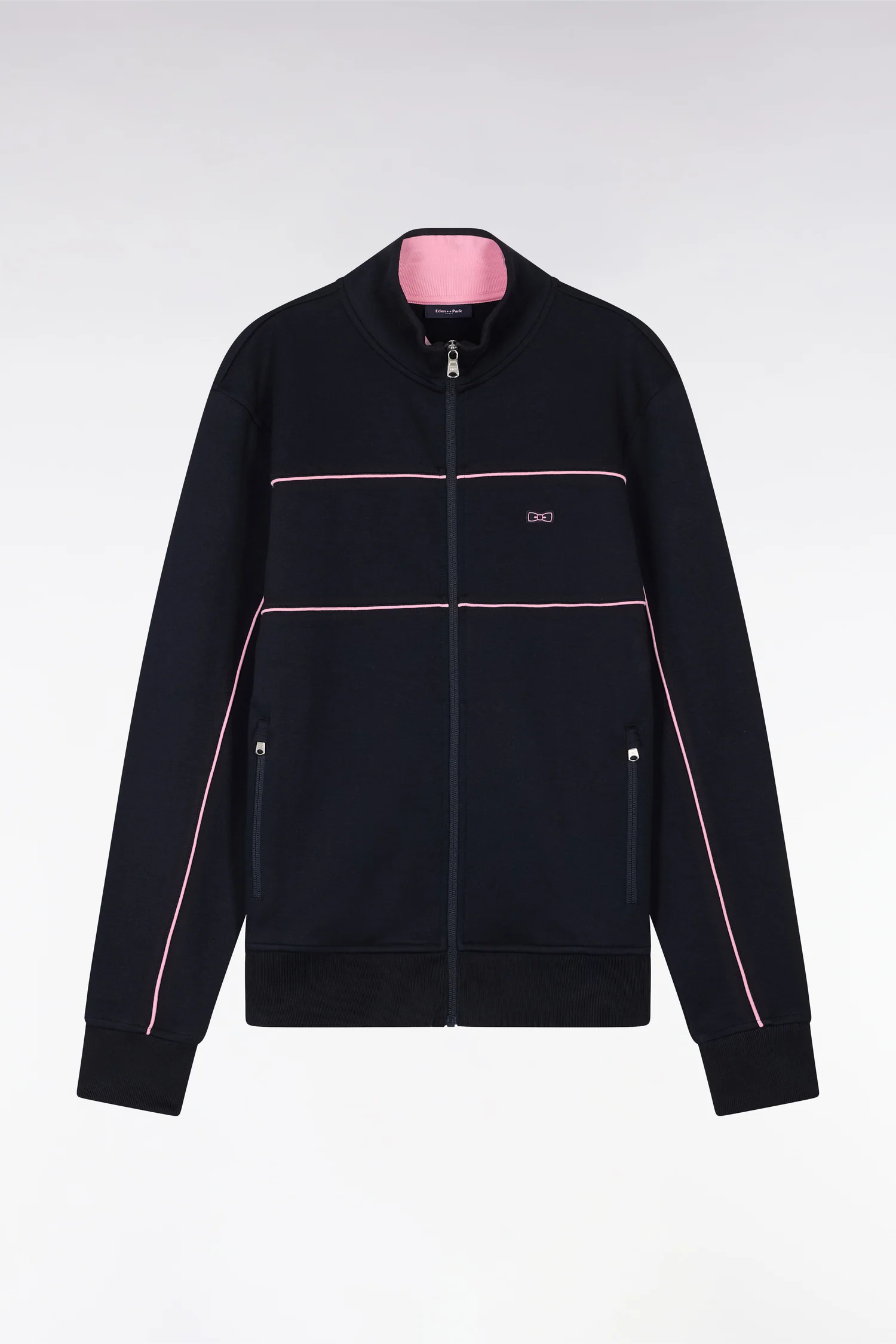Sweat-shirt zippé coupe droite en interlock de coton bleu